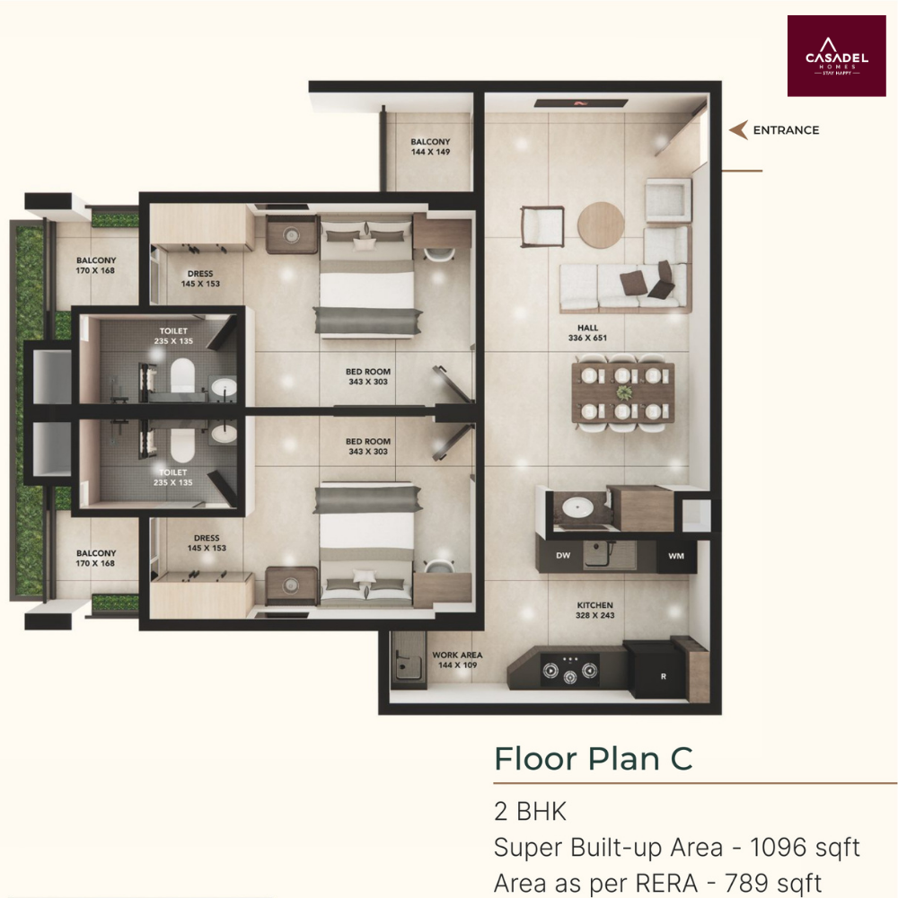 Premium sanitary fittings and concealed plumbing. False ceilin will be provided and wall tiles up to False ceiling height for easy maintenance.